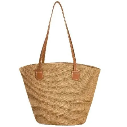 Handmade Straw Bag For Women Large Capacity Elegant Woven Handbag Shoulder Bag Underarm Bag Beach Bag