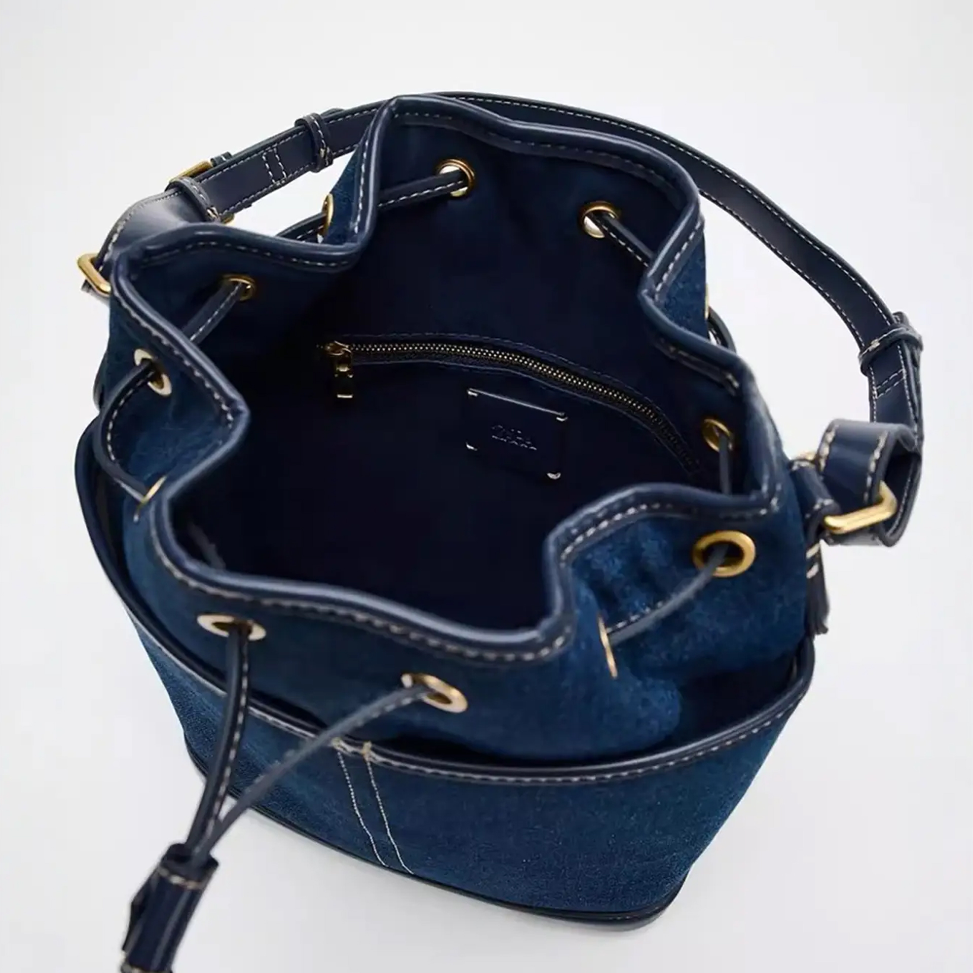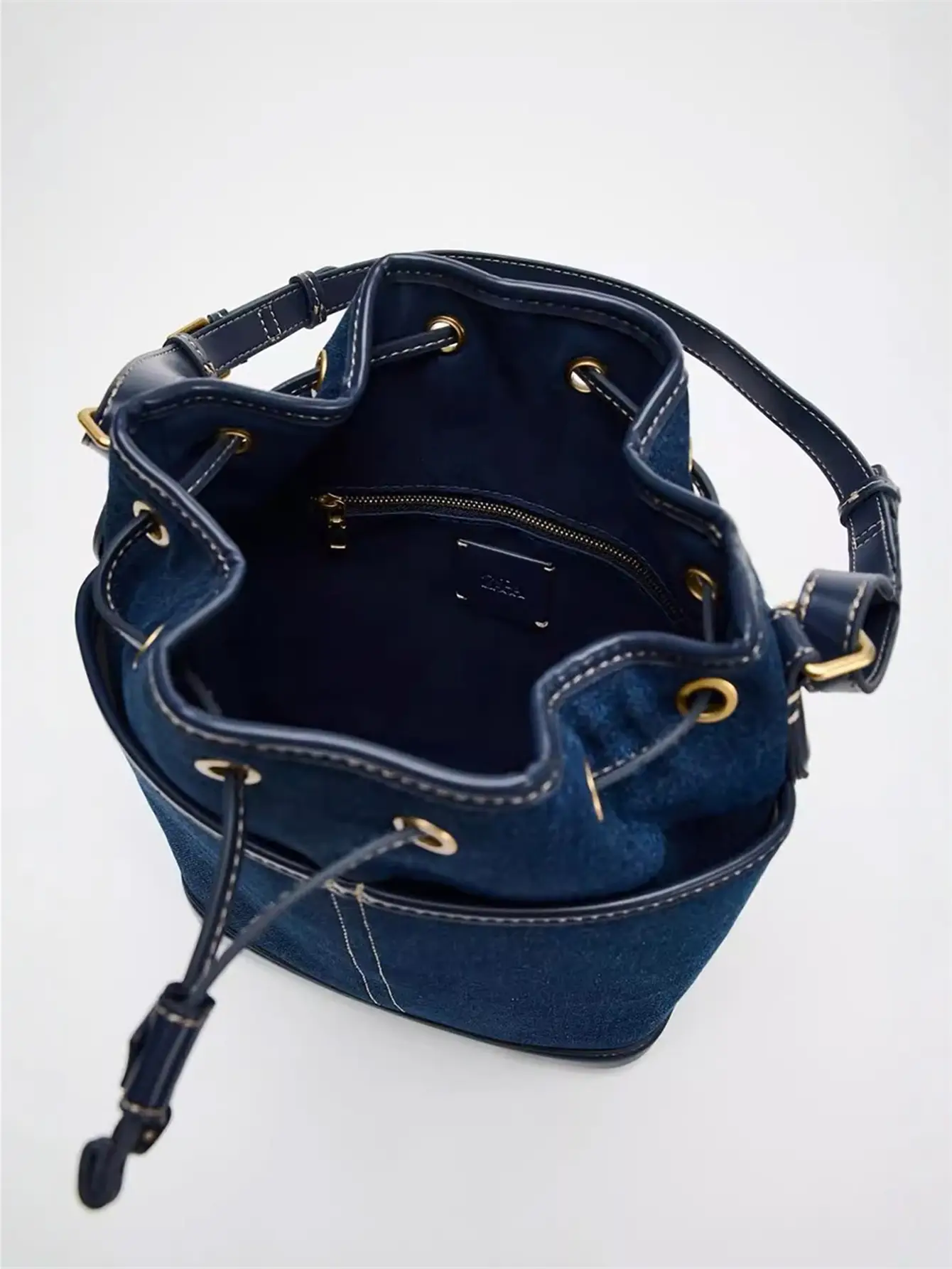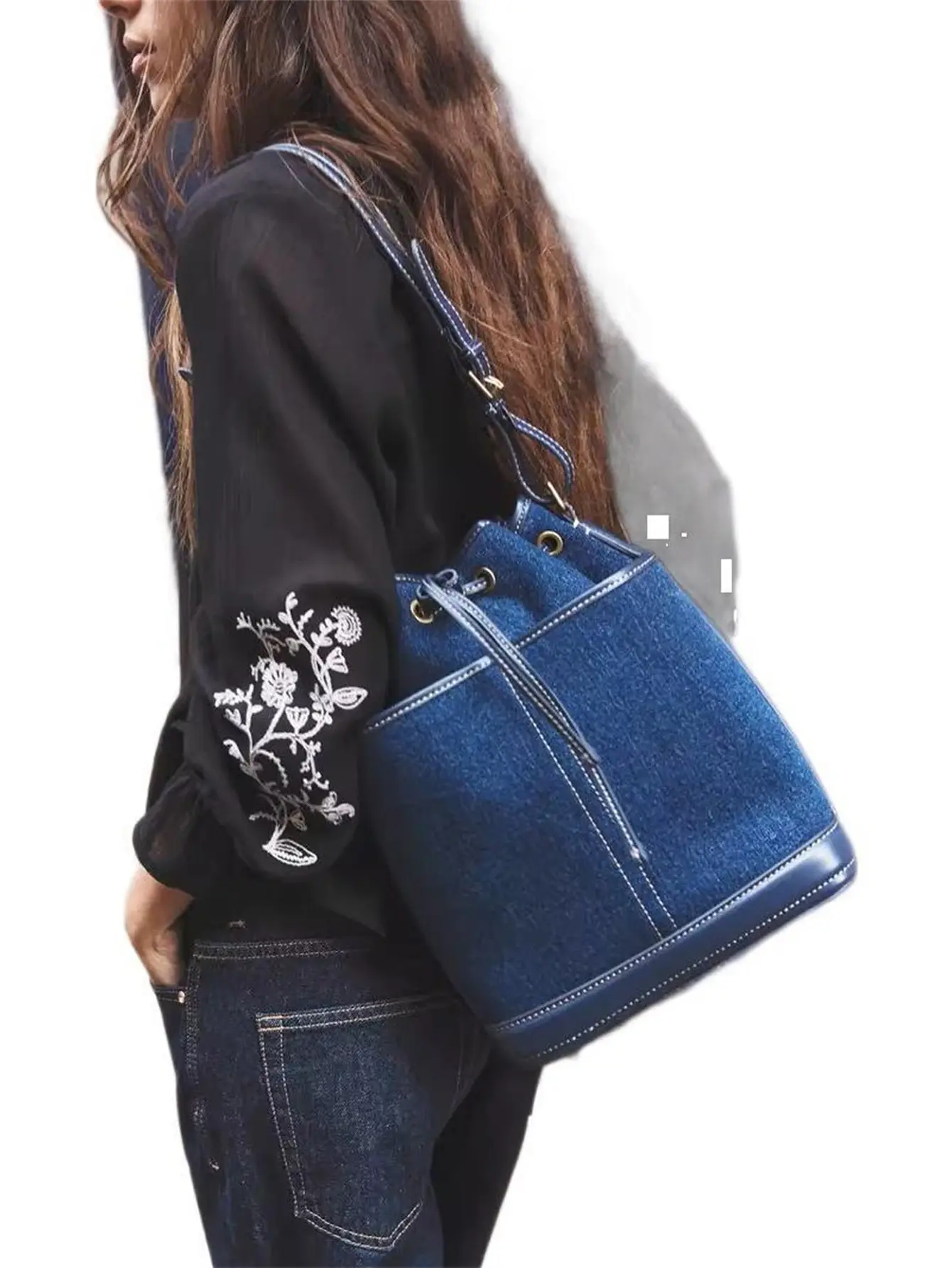 Autumn And Winter Denim Shoulder Bag Fashionable Canvas Bucket Bag