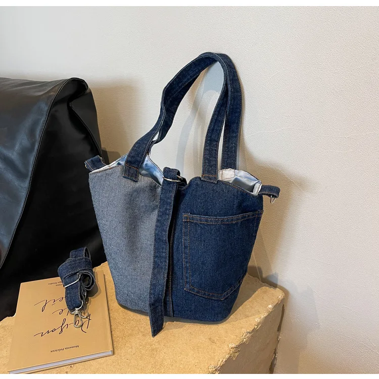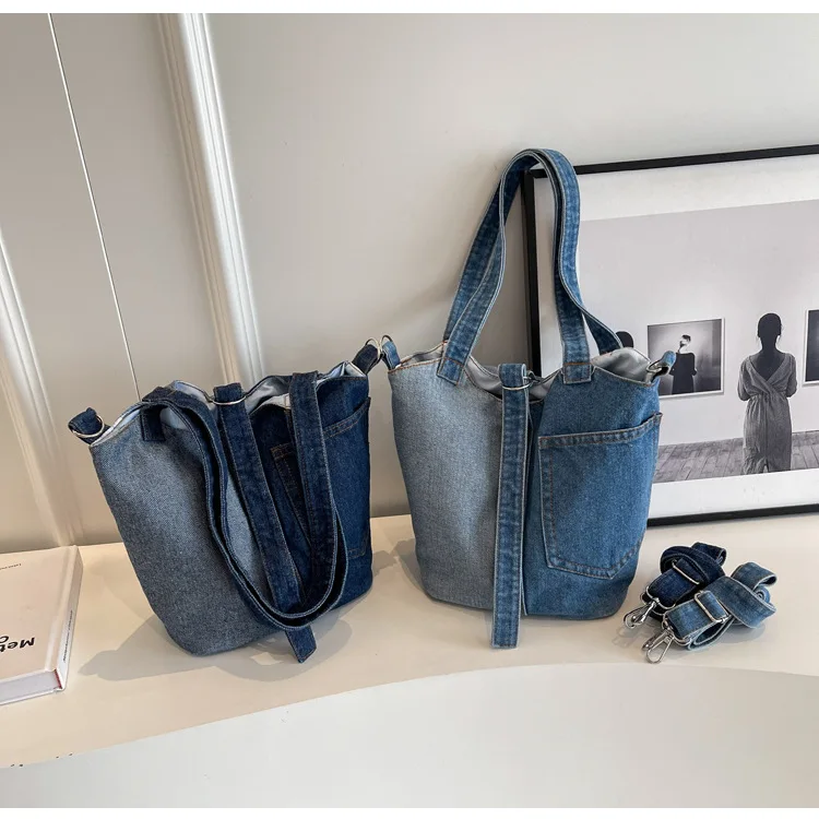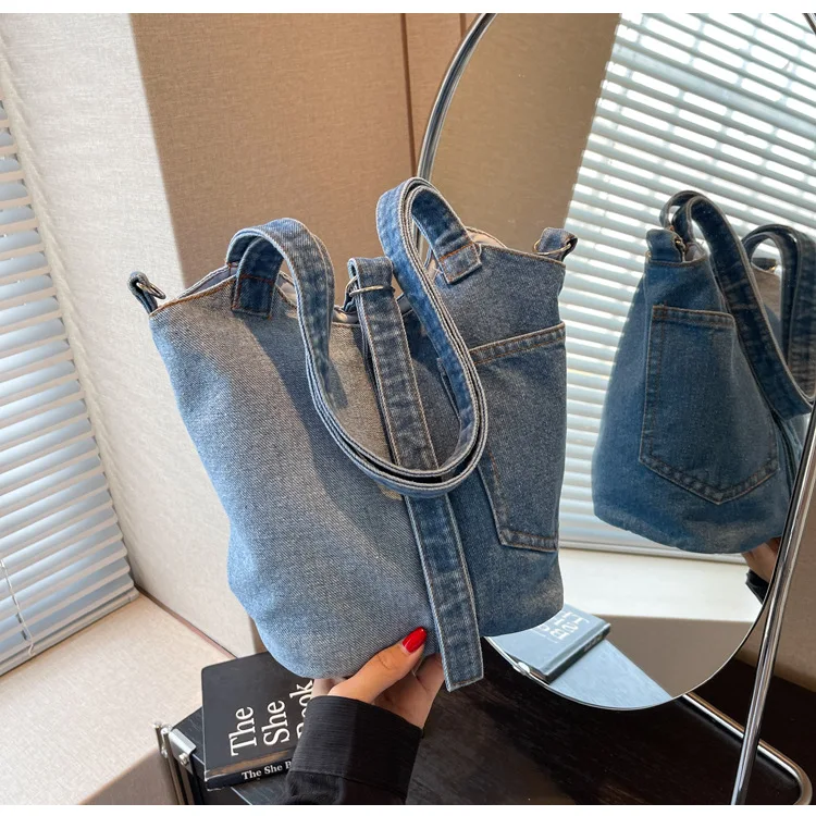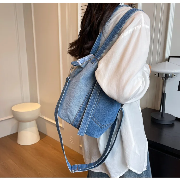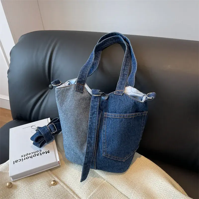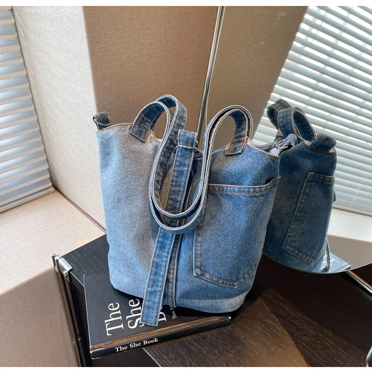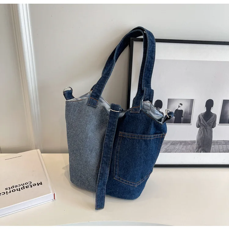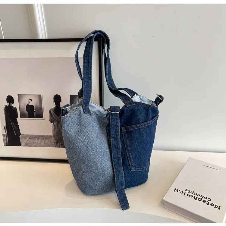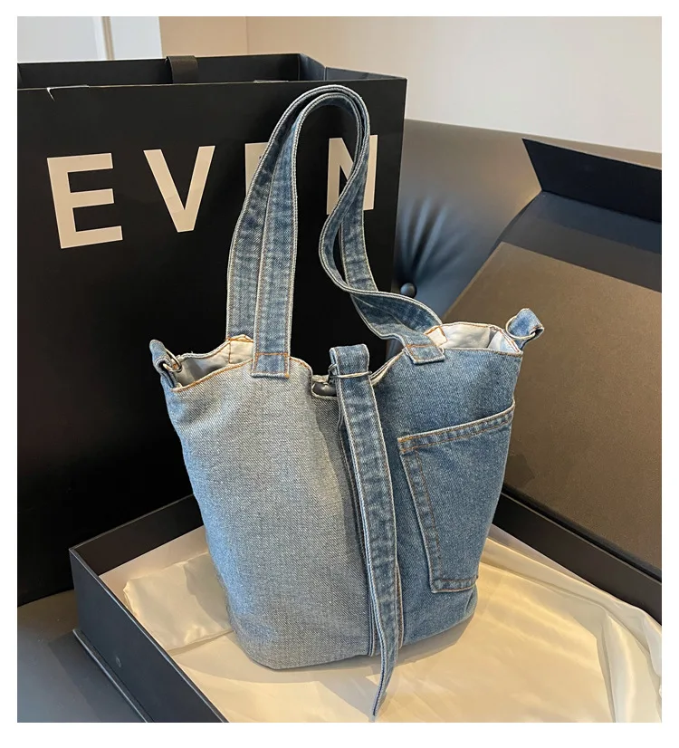 Denim Casual Shoulder Bag Women's Bucket Bag Large Capacity Handbag