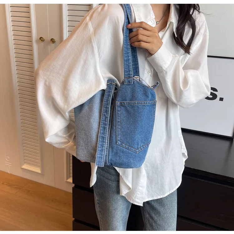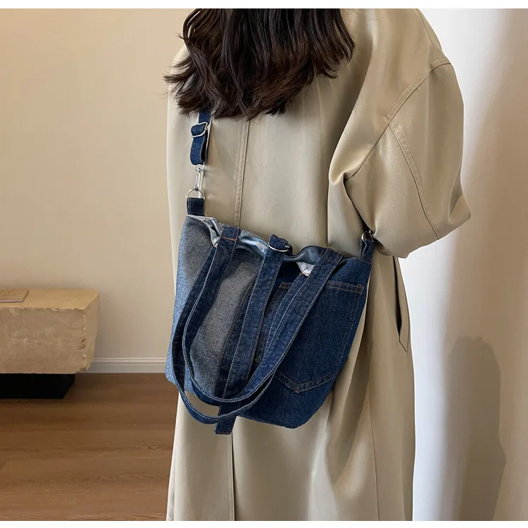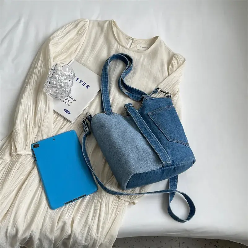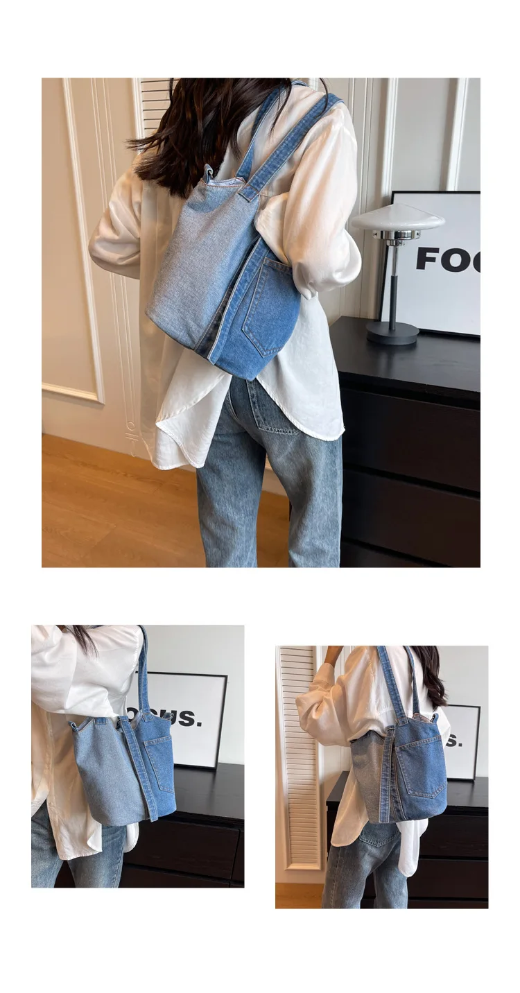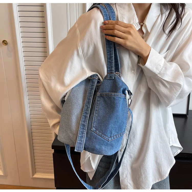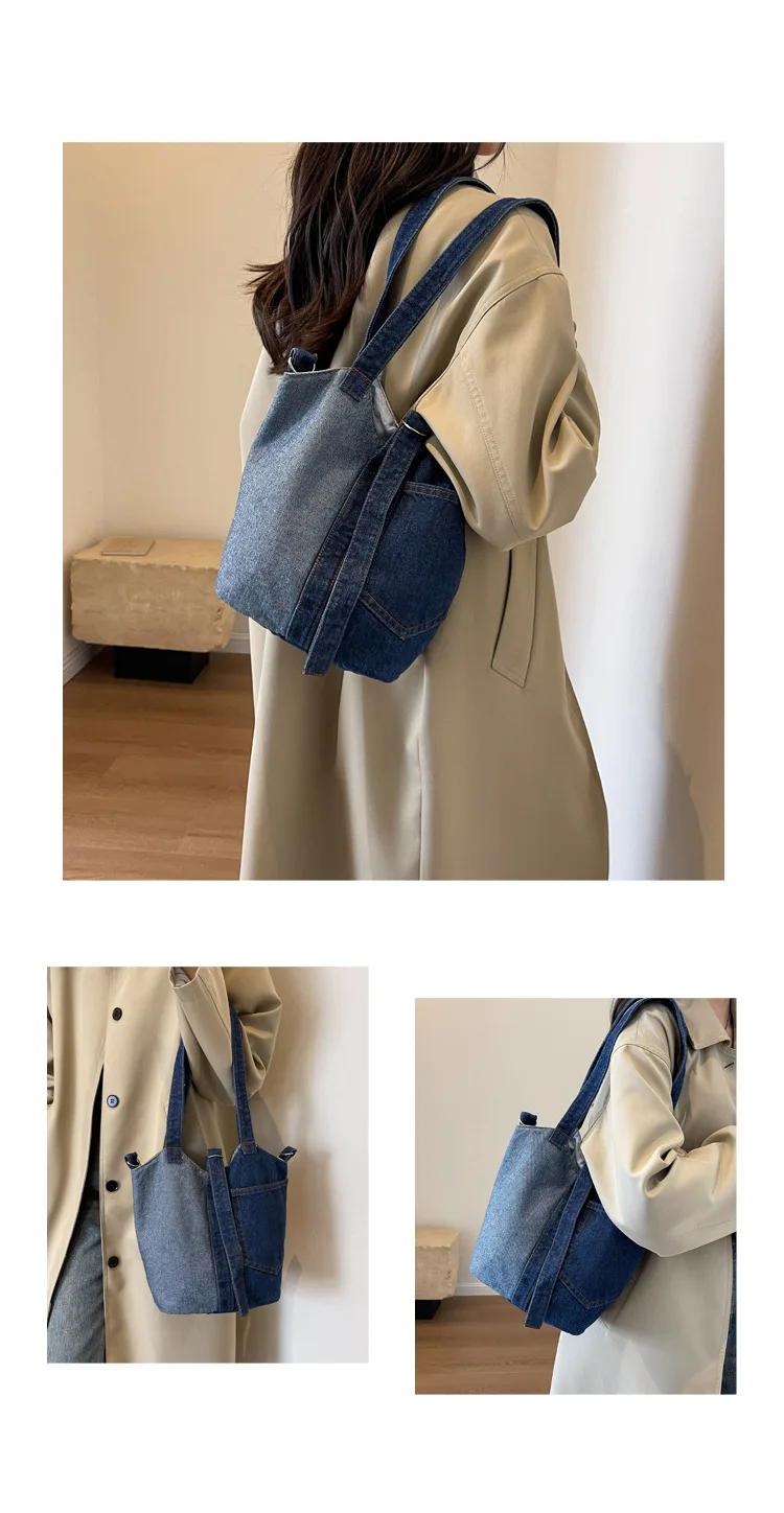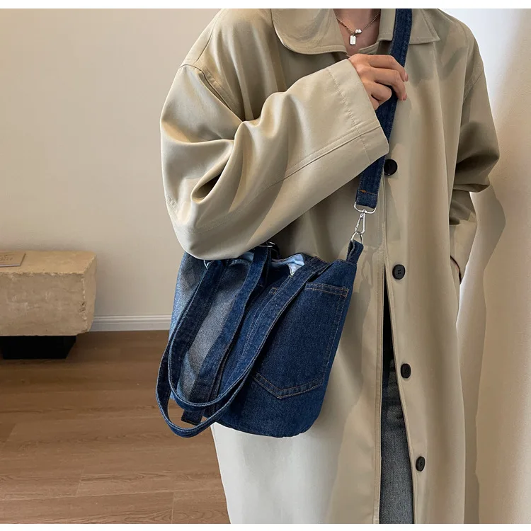 Denim Casual Shoulder Bag Women's Bucket Bag Large Capacity Handbag