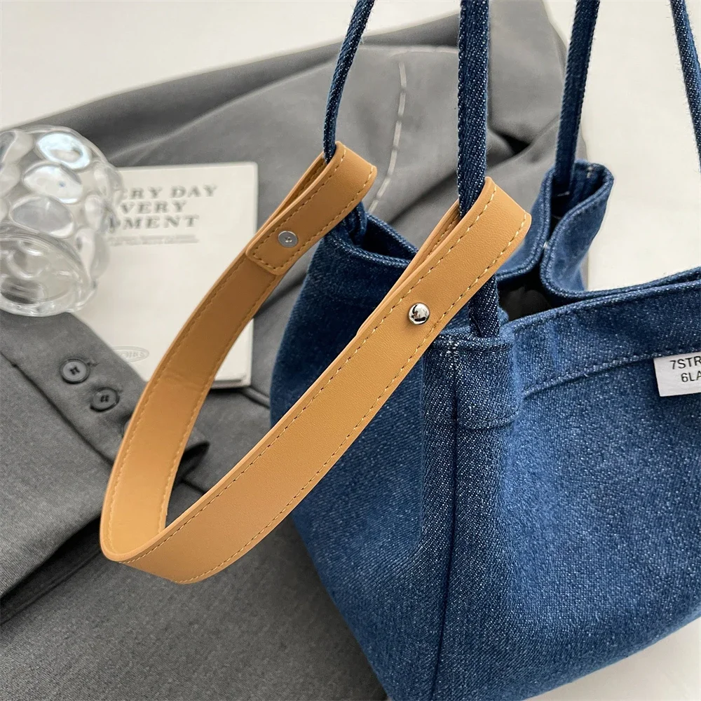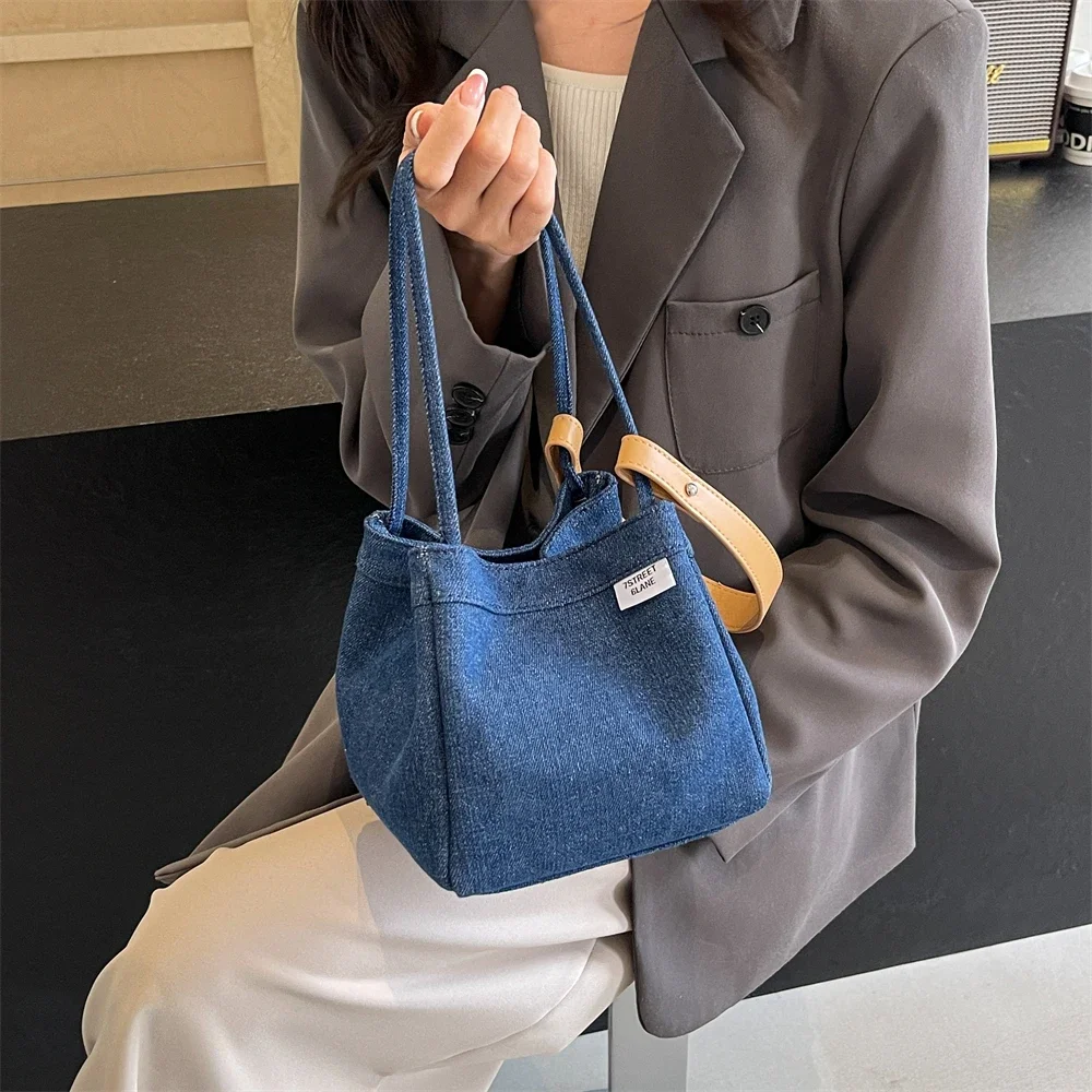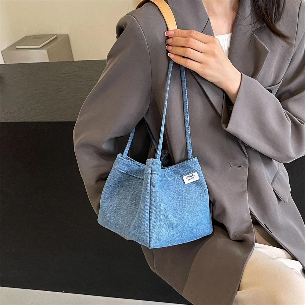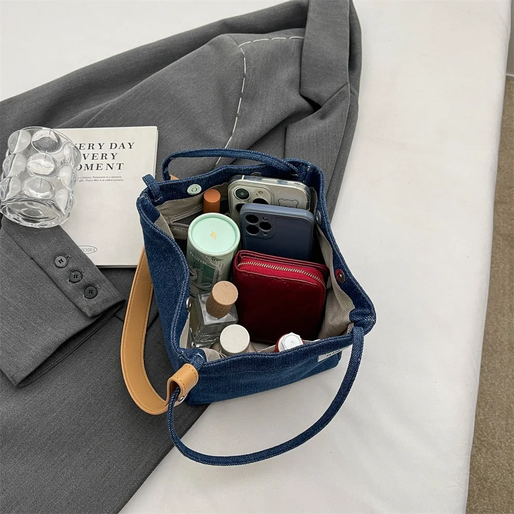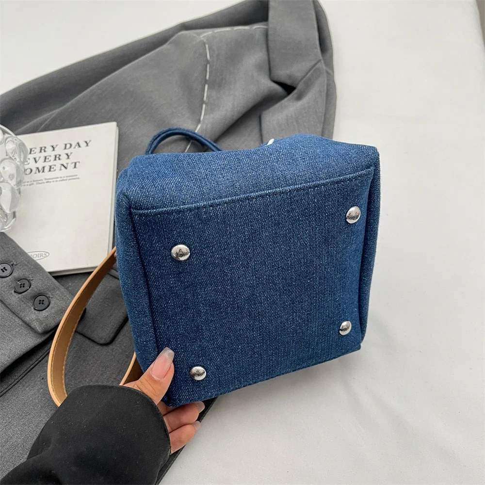 Deformable Denim Blue Shoulder Bucket Bag Women's Handbag