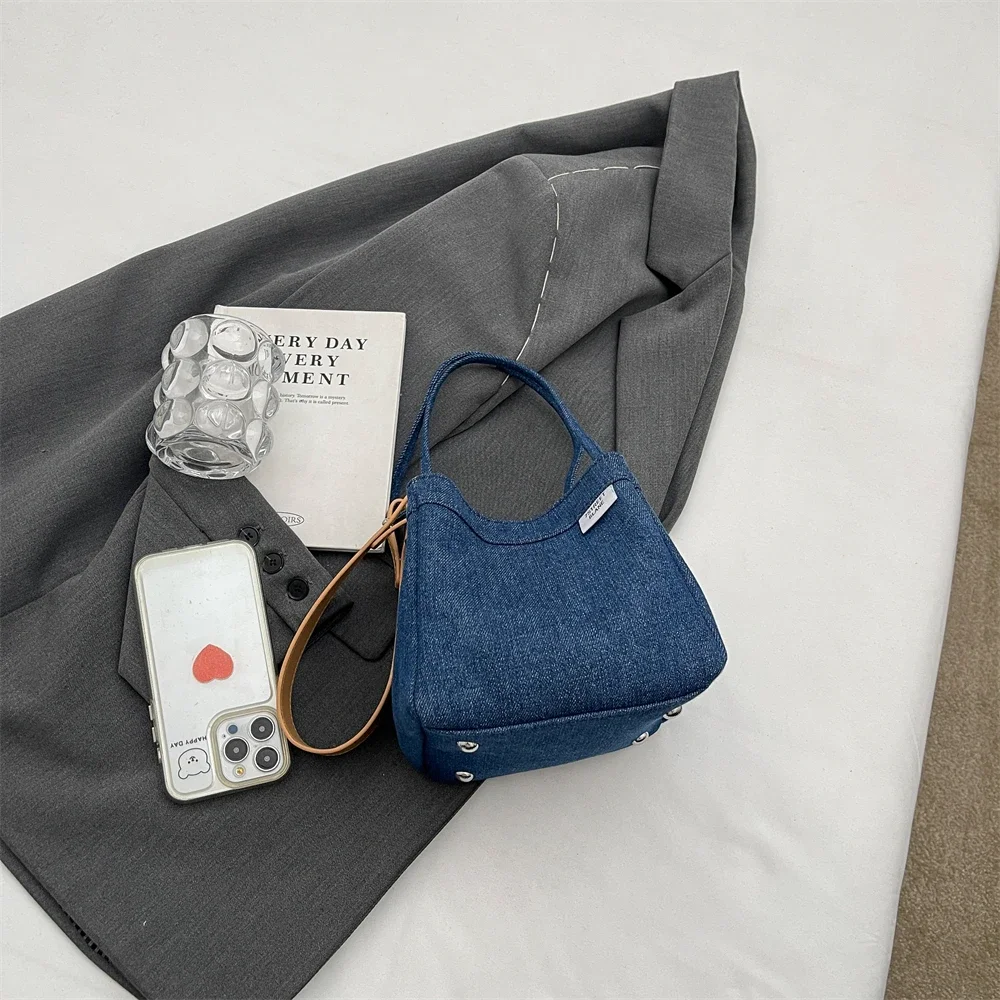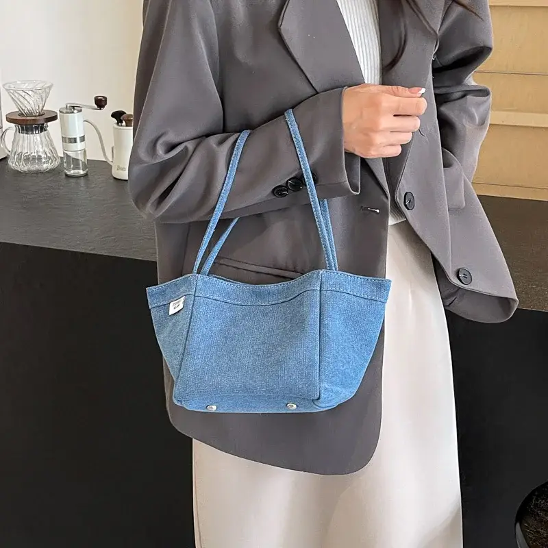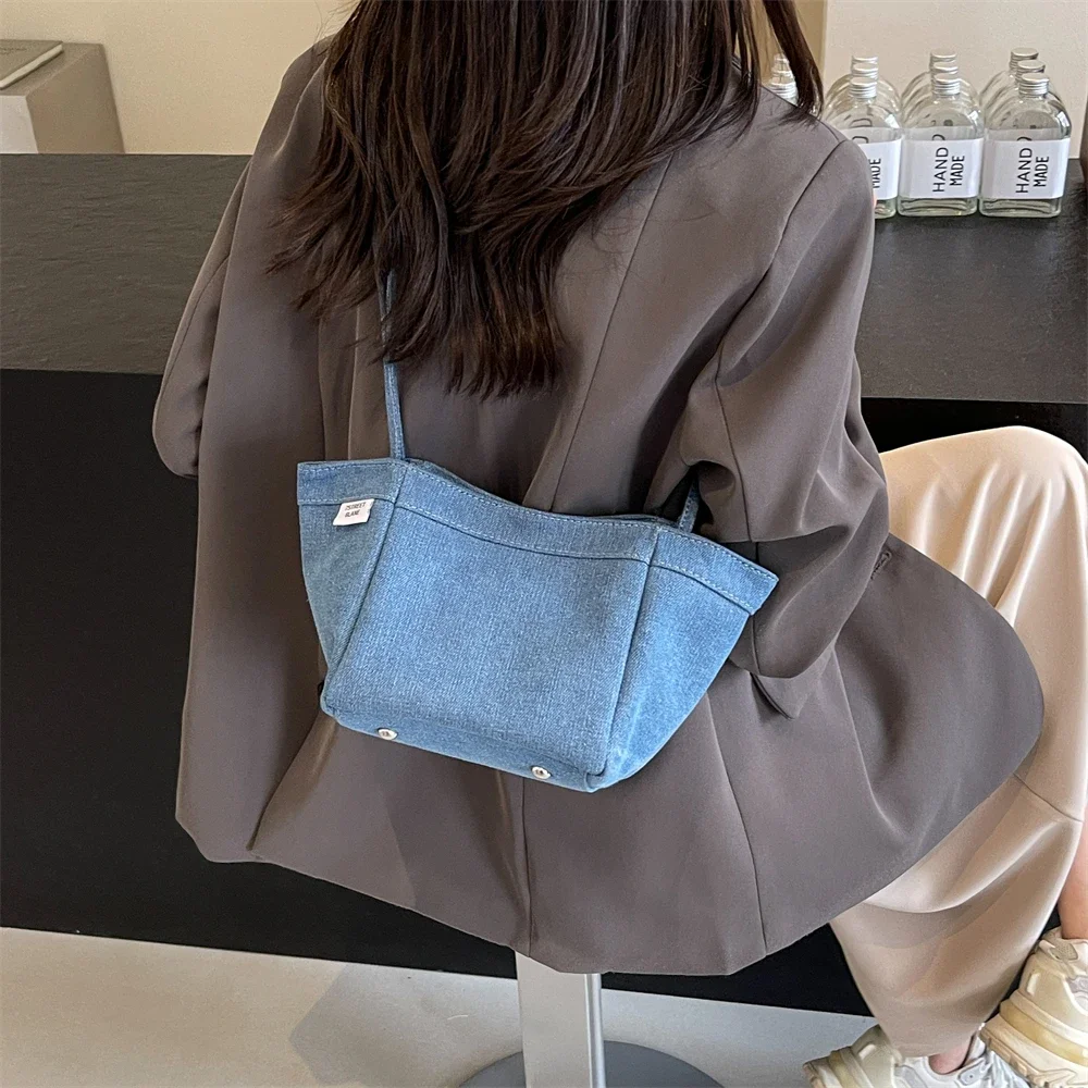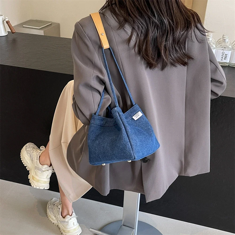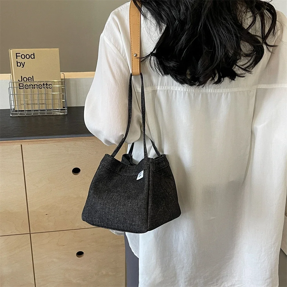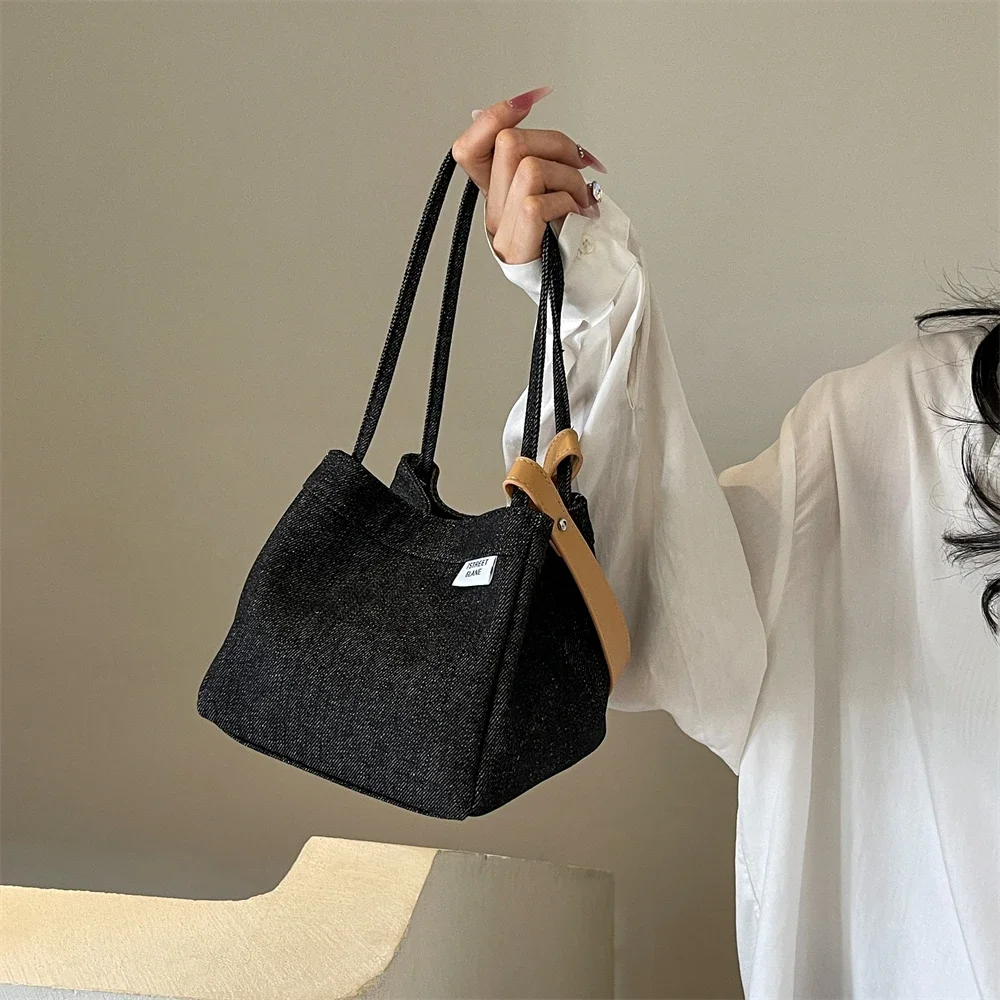 Deformable Denim Blue Shoulder Bucket Bag Women's Handbag