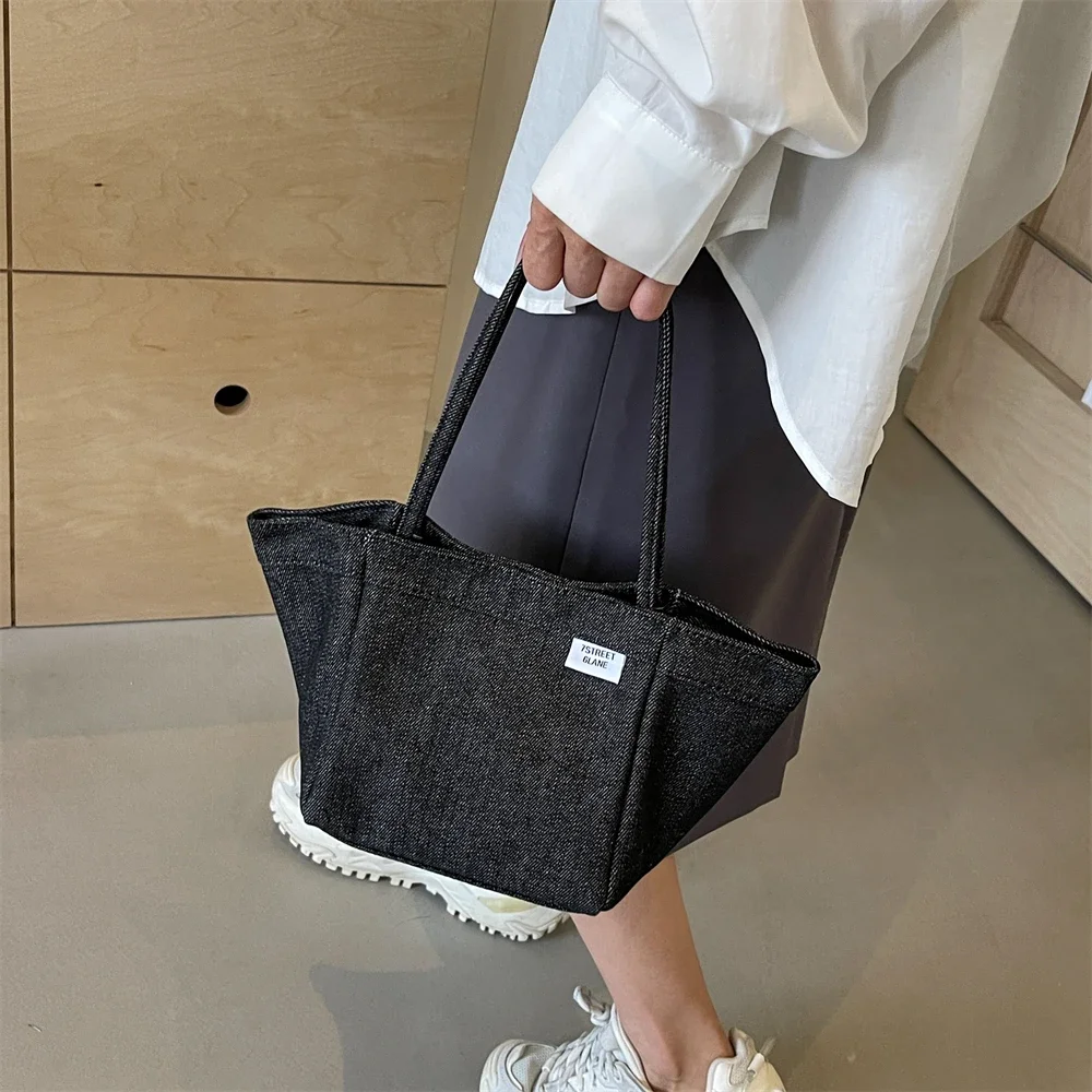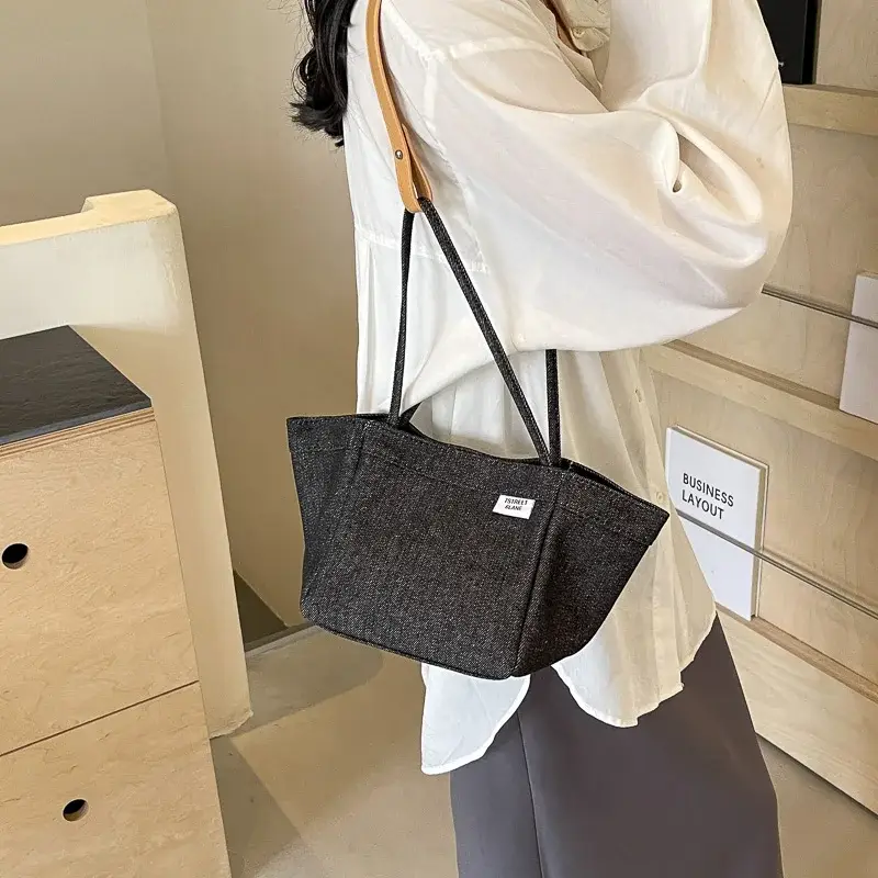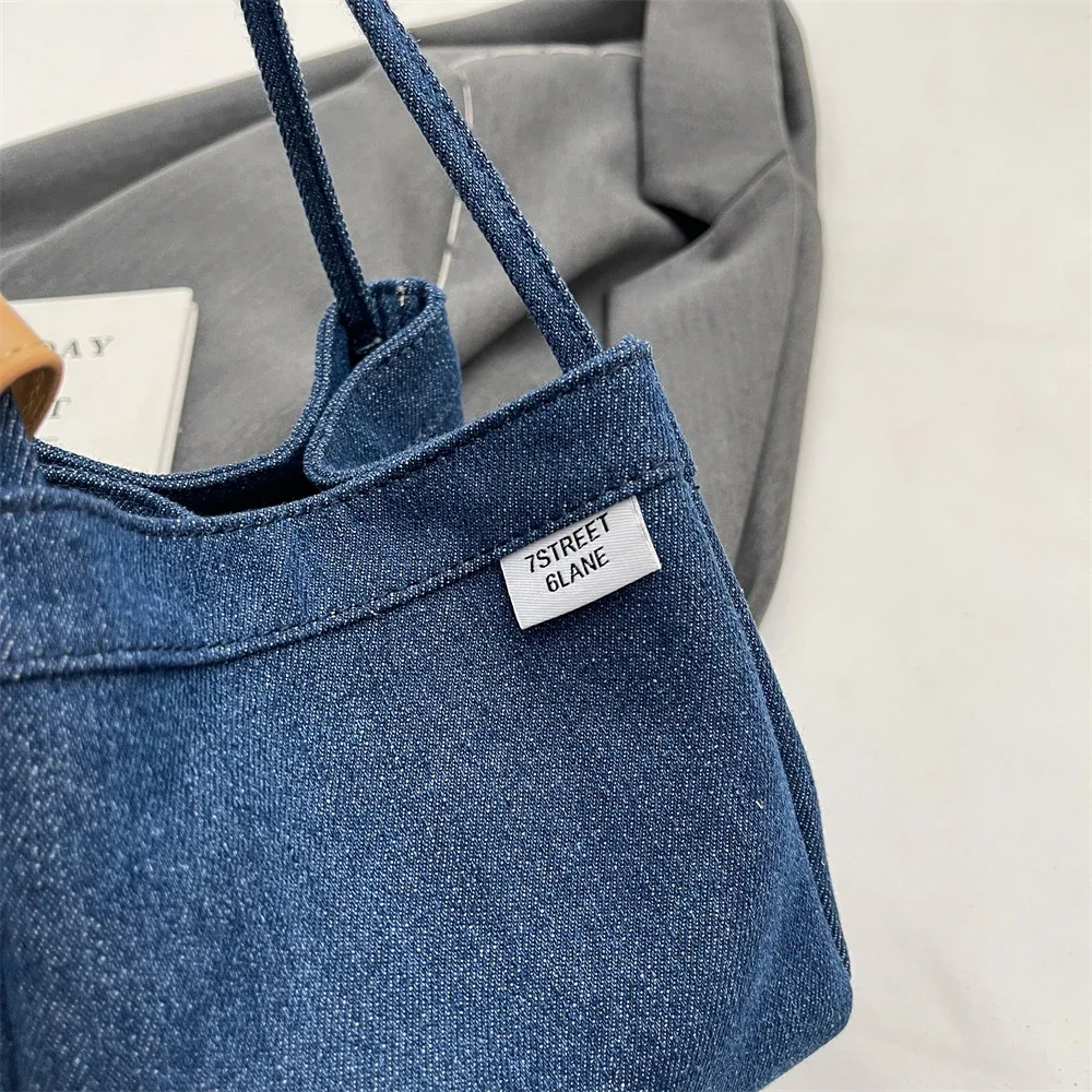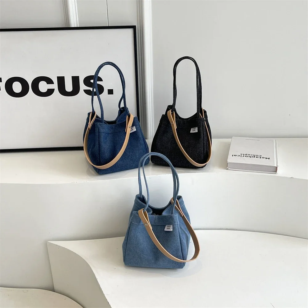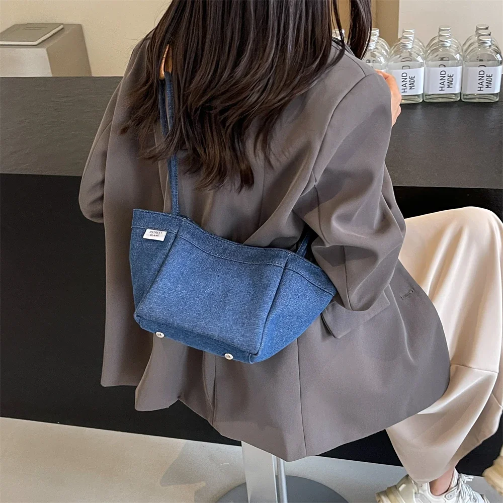 Deformable Denim Blue Shoulder Bucket Bag Women's Handbag