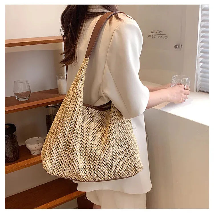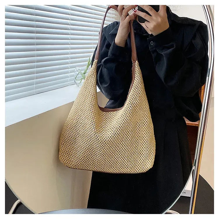 Straw Woven Tote Bags Casual Large Capacity Handbags Beach Women Shoulder Simple Style Straw Bags