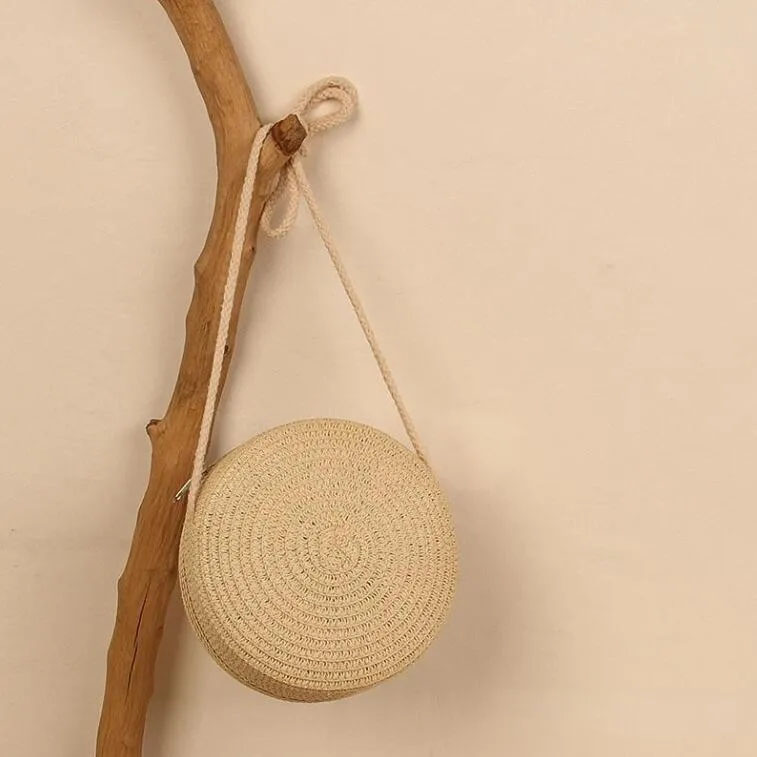 Women Bag Straw Bag Beach Vacation Weave Shoulder Bag Cross-Round Bag