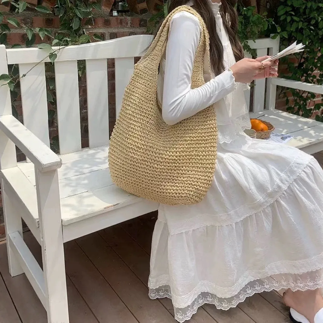 Bag Beach Vacation Style Straw Bag Shoulder Bag Tote Bag Large Capacity Handbag Woven Bag