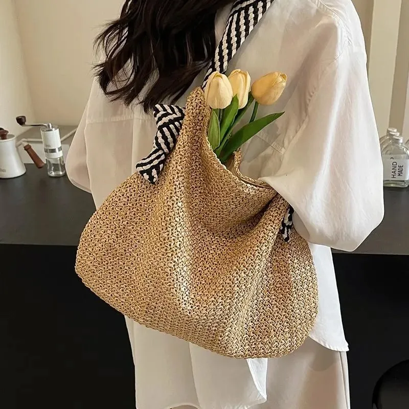 Relaxed Straw Bag For Women Large Capacity Bag Bag Casual Shoulder Bucket Bag Woven Beach Bag