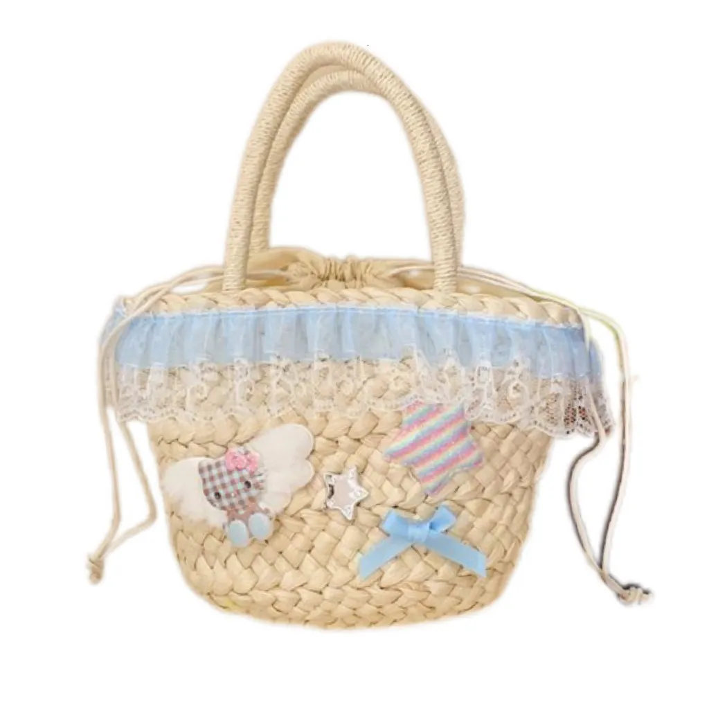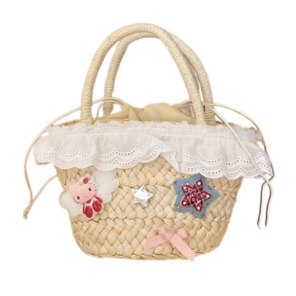 Woven Bags Travel Handbag Beach Vacation Woven Cat Grass Bag