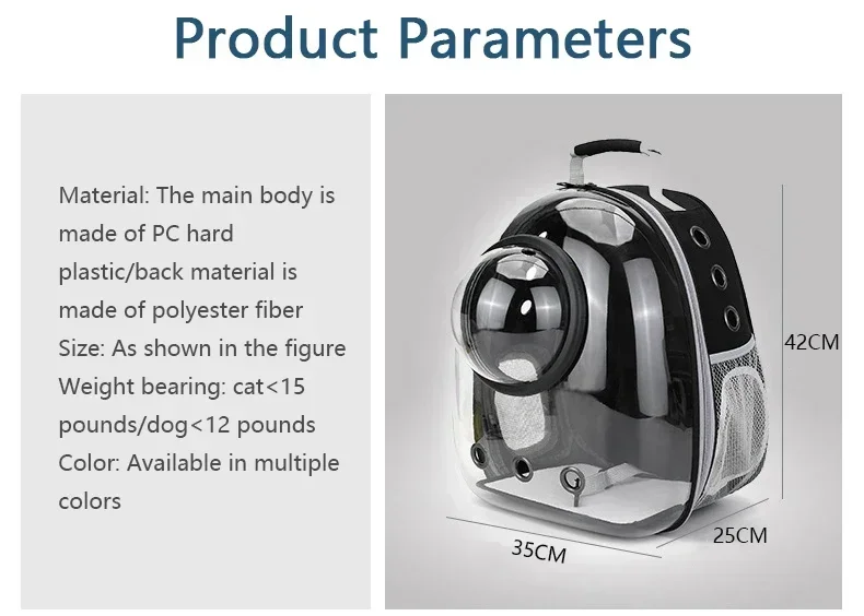 Breathable Space Capsule Pet Backpack Lightweight Portable Soft Carrier Bag for Cats Dogs Travel Outdoor