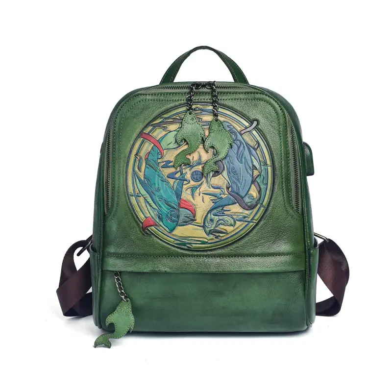 Vintage Genuine Leather Backpack Women's Travel Bag Backpack