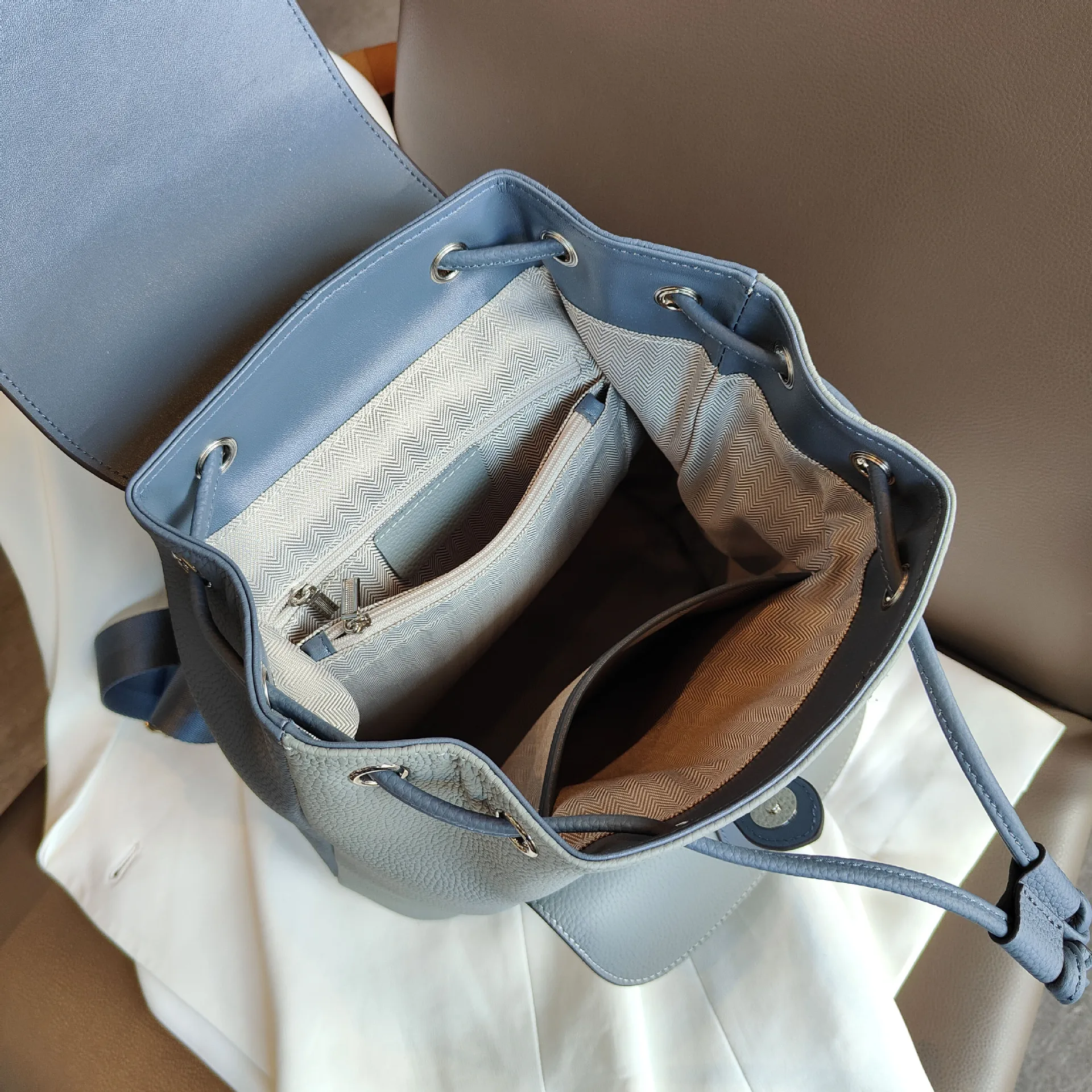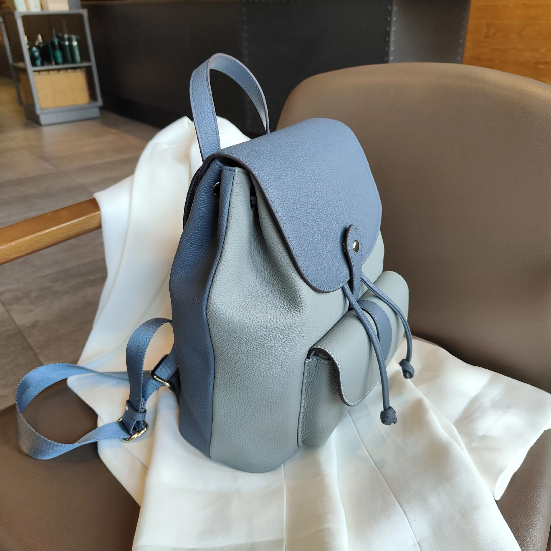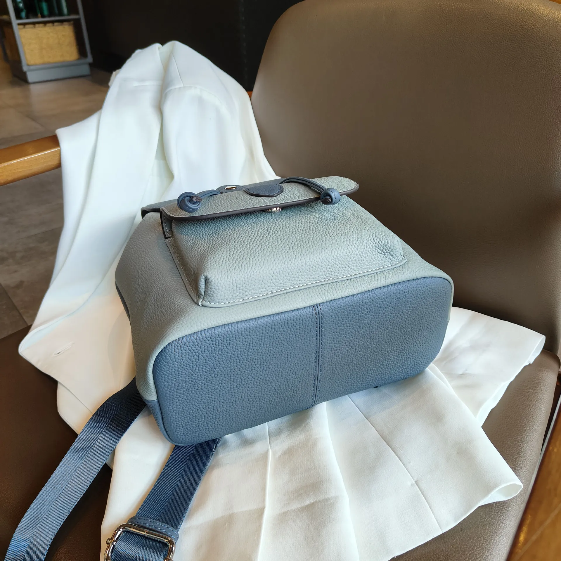 Retro Lace-Up Closure Anti-Theft Design Contrast Color Women's Backpack Genuine Leather Women's Backpack