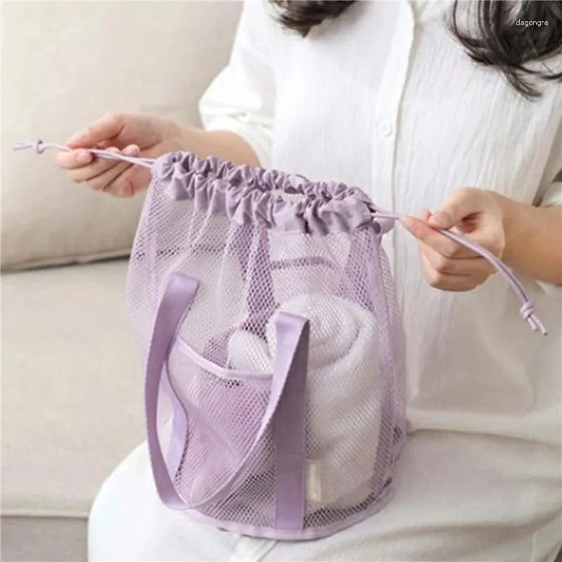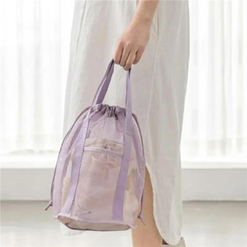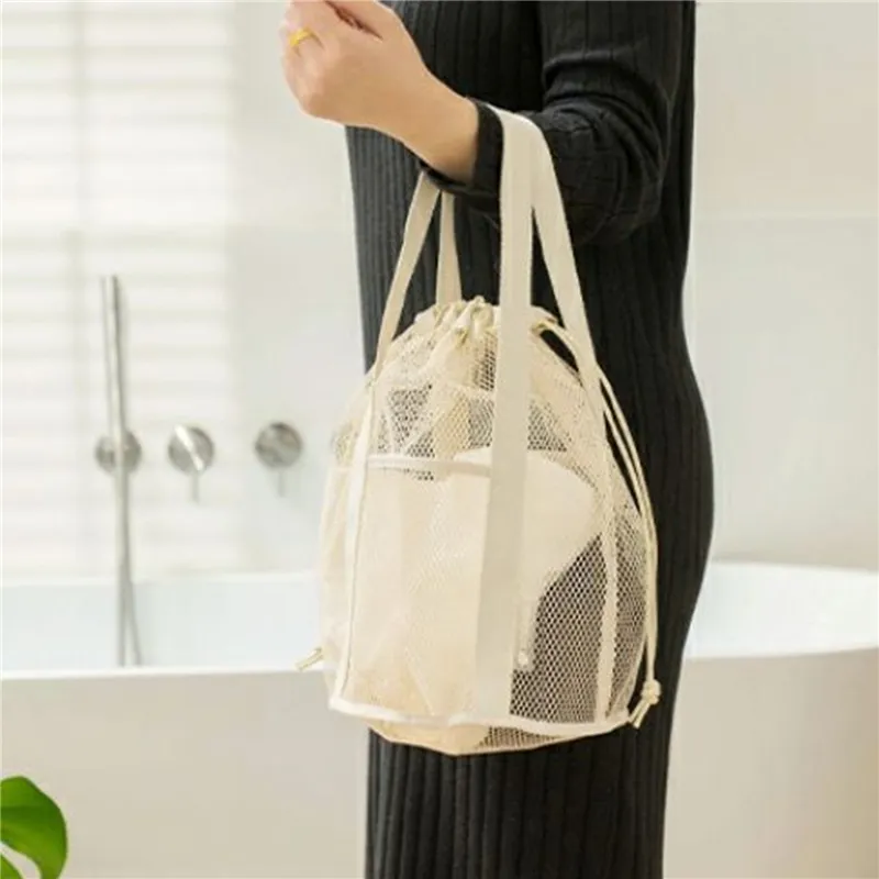 Cosmetic Bags Travel Large Capacity Mesh Nylon Bag Organizer Foldable Casual Drawstring Rope Bundle Pocket Swim Washing