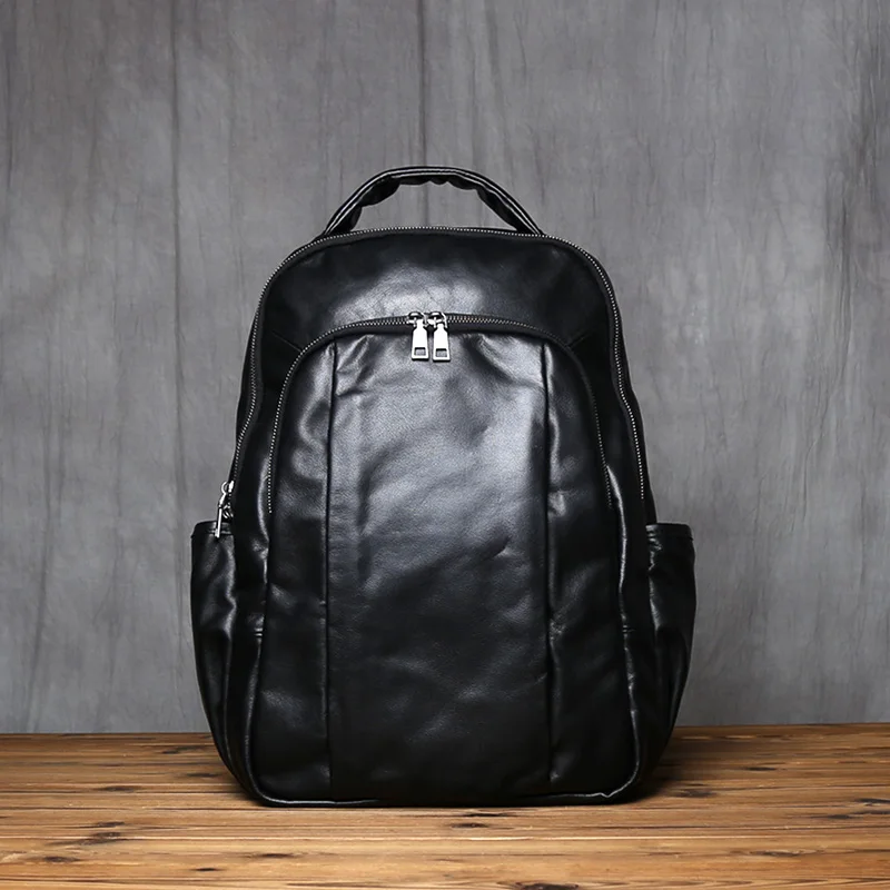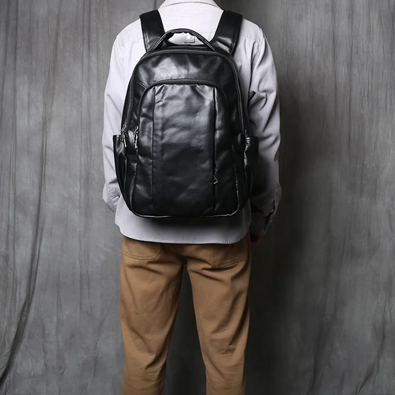 Genuine Leather Men's Backpack Stylish Large Capacity Computer Bag