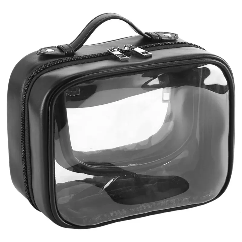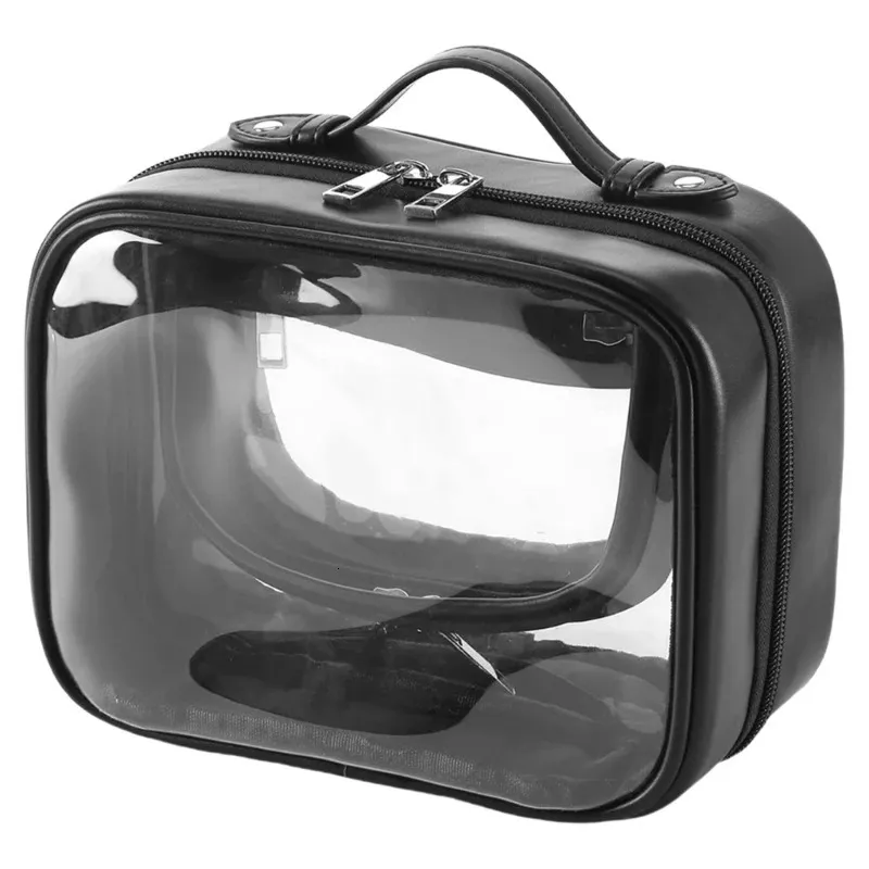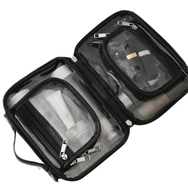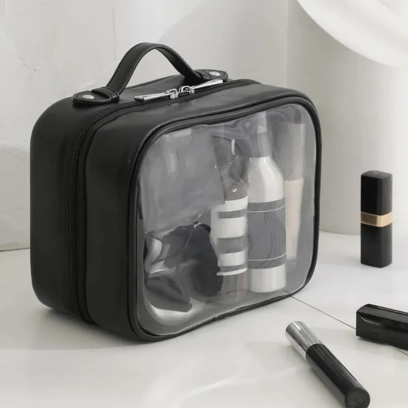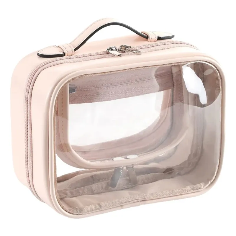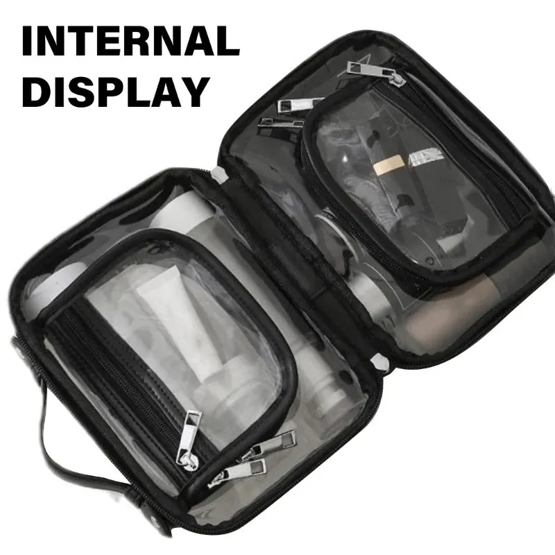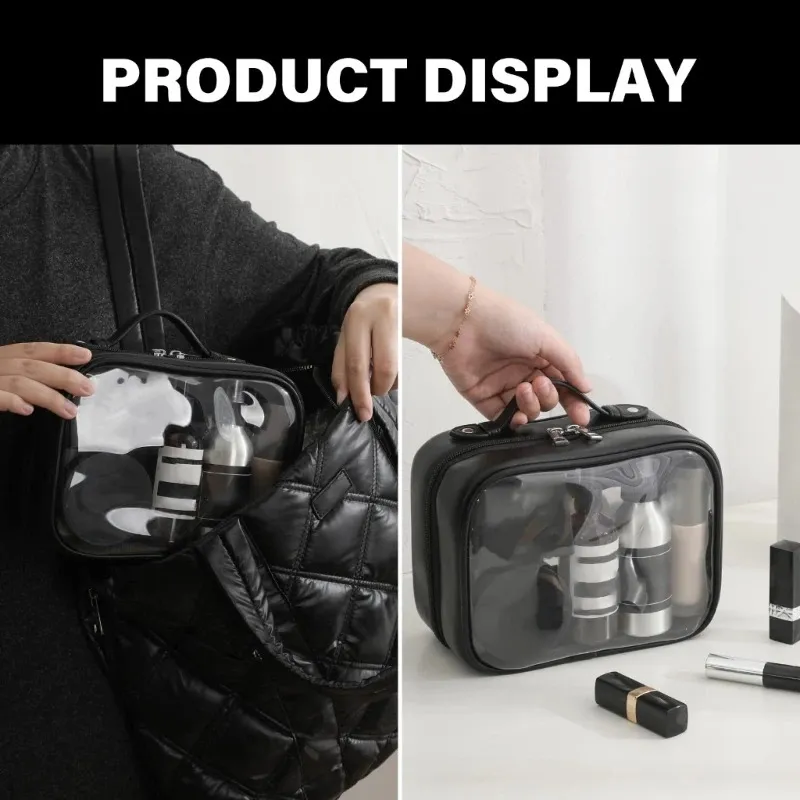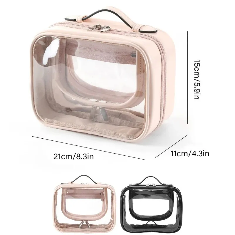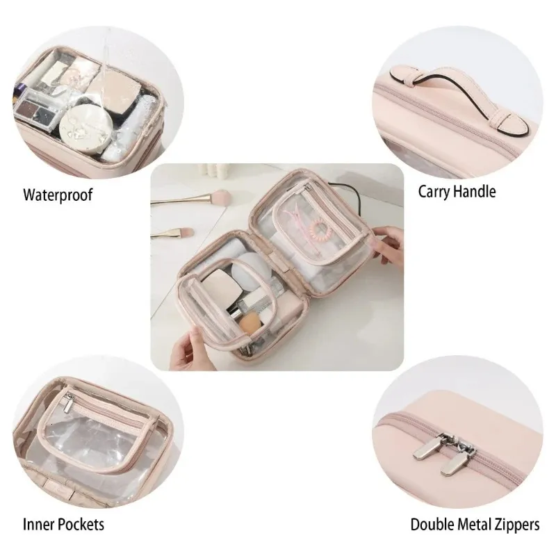 Travel Cosmetic Bag Large Capacity Waterproof Double Layer Makeup with Zippered Clear Toiletry Case