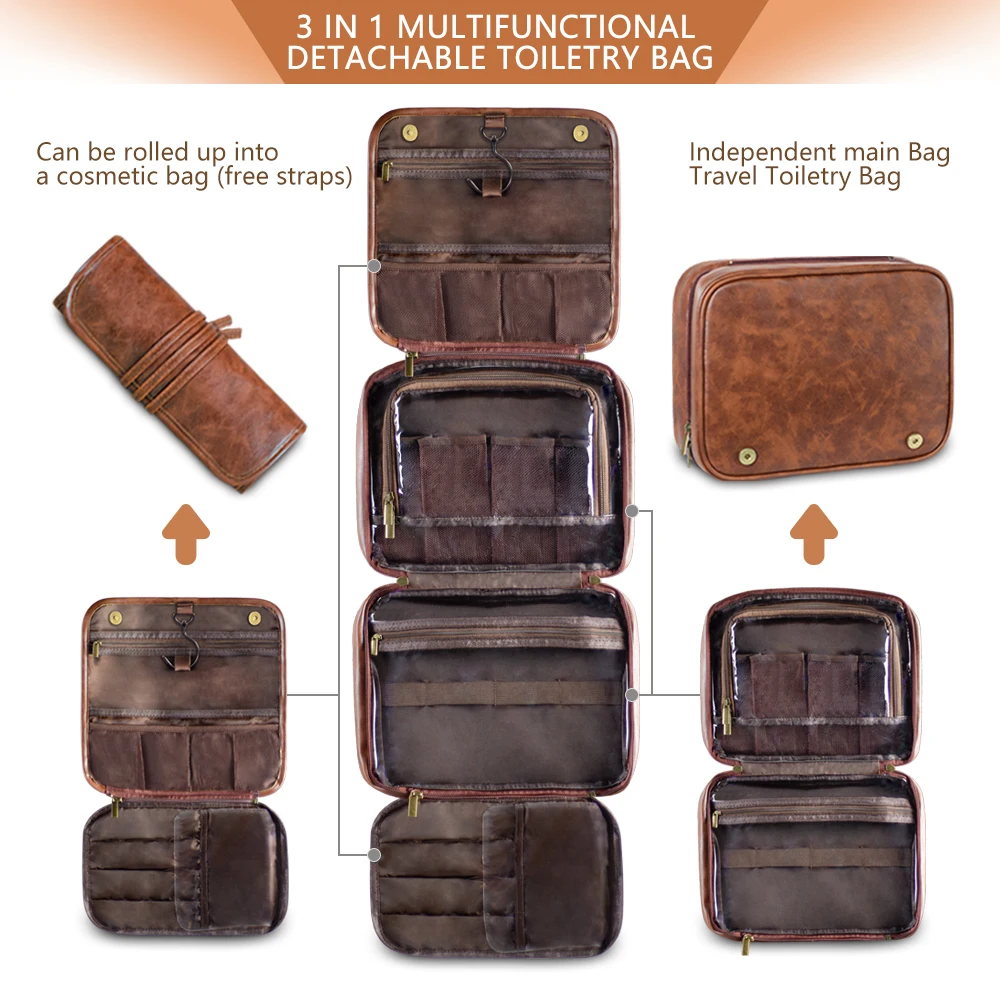 PU Wash Bag Large Capacity Storage Partition Waterproof Makeup Bag Storage Bag